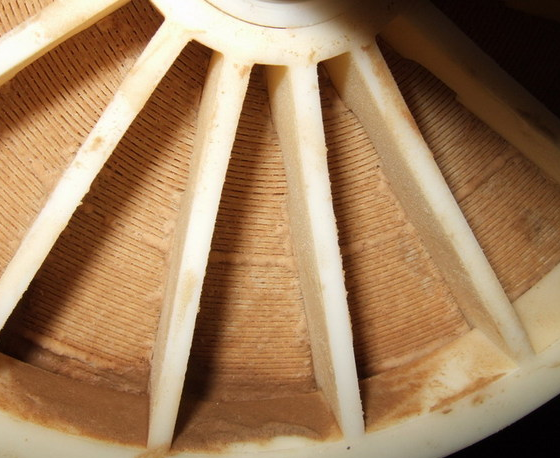 通過拆卸末段末支膜元件,通常可以在膜元件端面、膜殼端板等處觀察到垢類物質(zhì),對膜元件進(jìn)行控水后稱重,膜元件的重量會比新膜增加。